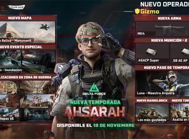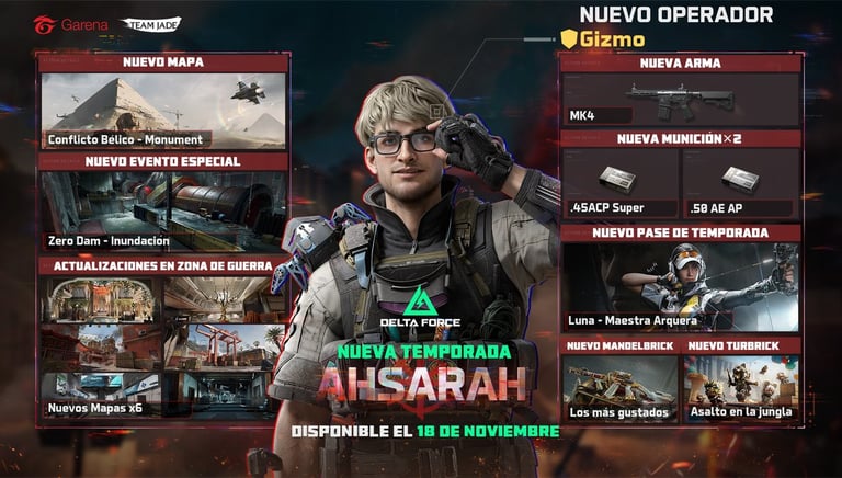 En la temporada “Ahsarah”, el nuevo operador Gizmo (también ingeniero) puede desplegar “nidos de rastreadores” que explotan al acercarse enemigos, además de minas de humo inteligentes y un módulo que atrapa rivales. Garena Delta Force: On Mobile & PC!
