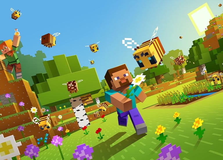 Minecraft es un videojuego de mundo abierto que permite a los jugadores explorar, construir y sobrevivir en un entorno generado de manera procedimental compuesto por bloques tridimensionales. Los jugadores pueden recolectar recursos, fabricar herramientas y construir estructuras, desde simples casas hasta complejas ciudades o máquinas con mecanismos de redstone. Cuenta con múltiples modos de juego: Supervivencia, donde se deben gestionar hambre y salud; Creativo, con recursos ilimitados; Aventura, para mapas personalizados; y Espectador, para explorar libremente. Además, ofrece multijugador y servidores comunitarios, fomentando la cooperación y la creatividad. Su estilo gráfico simple y su libertad infinita lo han convertido en un fenómeno global.